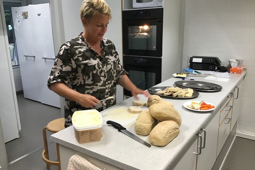 Vi har ansat en køkken ansvarlig, der serverer sund mad, så vidt muligt økologisk, vi har guld spisemærket i økologi, det vil sige at vores mad er 90 -100% økologisk